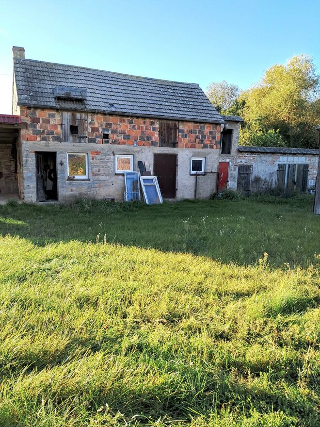 PRZEDSTAWIAMY BUDYNEK MIESZKALNY PARTEROWY Z UŻYTKOWYM PODDASZEM, WYMAGAJĄCY REMONTU.